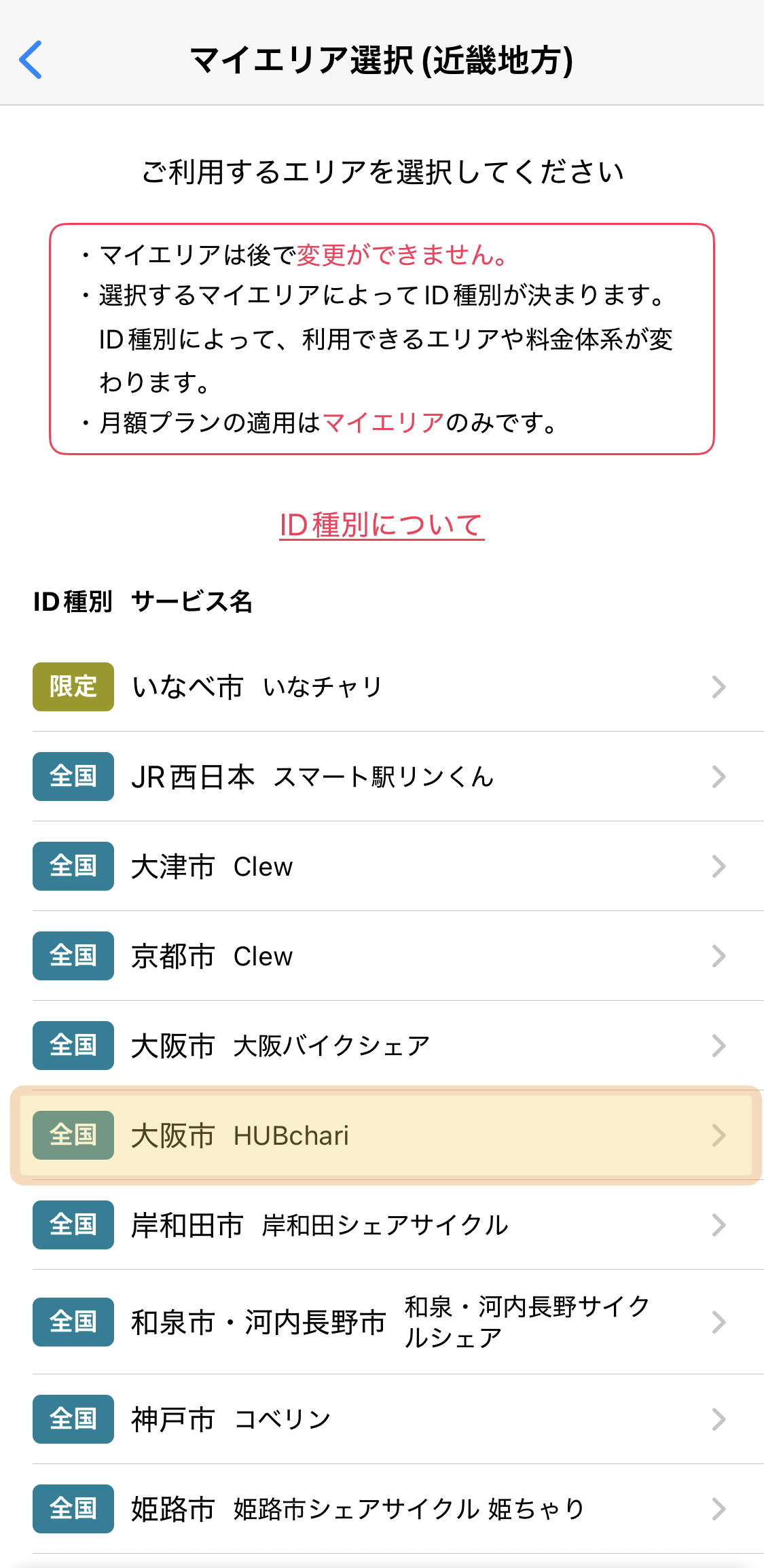 「大阪市 HUBchari」をお選びください。